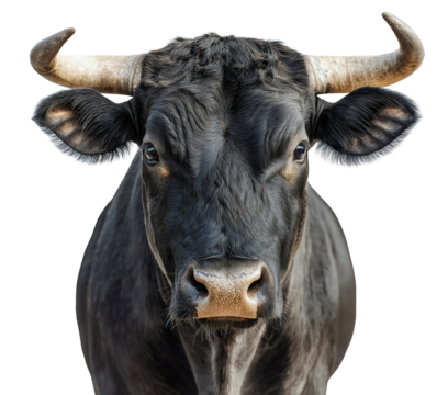 Bull head logo. Abstract stylized cow or bull head with horns icon. Premium logo for steak house, meat restaurant or butchery. Taurus symbol. Vector illustration.