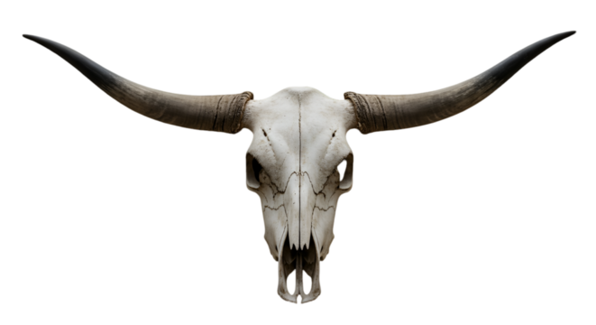 Isolated Animal Skull Illustration with Horns on Transparent Background