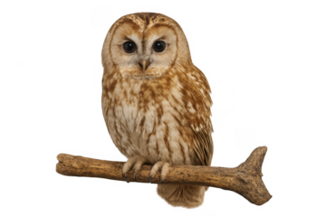 Nighttime tawny owl isolated on transparent background