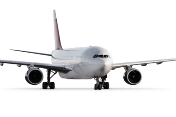 White airplane on land passenger jet aircraft Airbus A320 rear back view angle, isolated on a transparent background. Modern jetplane with two jet engines