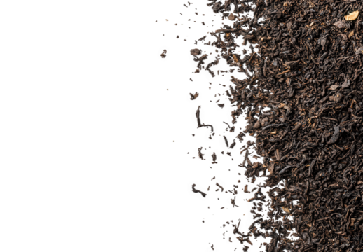 Open Tea Bag with Loose Black Tea Leaves Isolated on Transparent Background