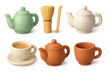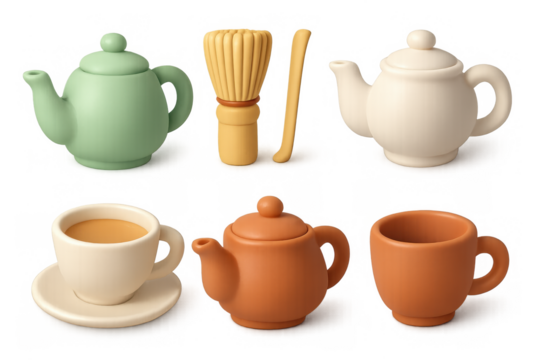Man in traditional clothing practicing tea ceremony, clean closeup style, isolated on white background. Concept of culture and mindfulness. Ai generative