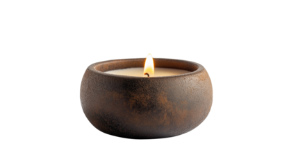 tea light . brown burning candle isolated on white background , transparent png