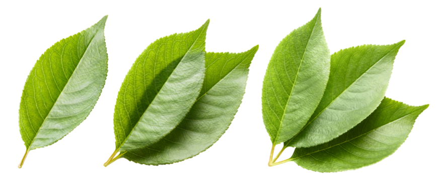 set / collection of fresh green mint leaves, twigs and tips in different positions isolated over a transparent background, cut-out cooking / food, cocktail, tea or essential oil design elements, PNG