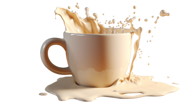 splash of hot milk ceramic cup on transparent background. generative ai. png format
