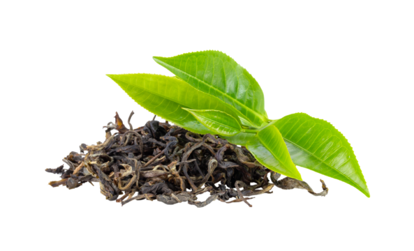 Fresh green tea leaf and dry  isolated on transparent png