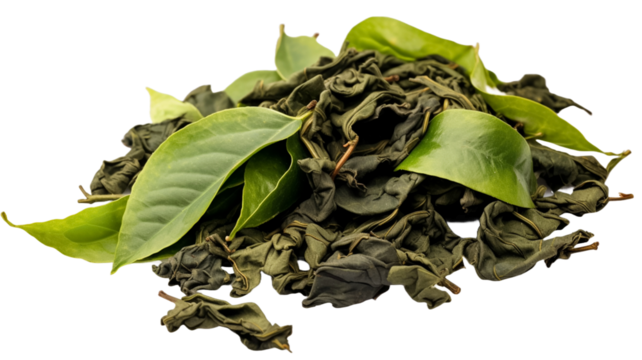 Fresh green tea leaf and dry isolated on transparent png background.