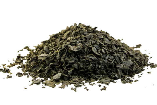 Heap Darjeeling Tea dried tea leaves isolated on white, close up, side view