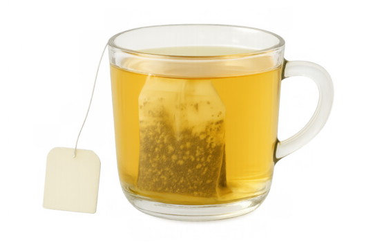 A cup of tea with a teabag isolated on transparent background
