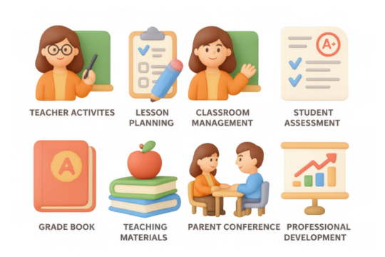 Collage with 3d education and social media icons for universities and schools. Realistic 3d high-quality isolated. 3d render