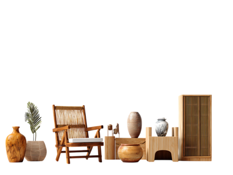 Outdoor Teak Wood Dining Set With Six chairs  isolated on a transparent background