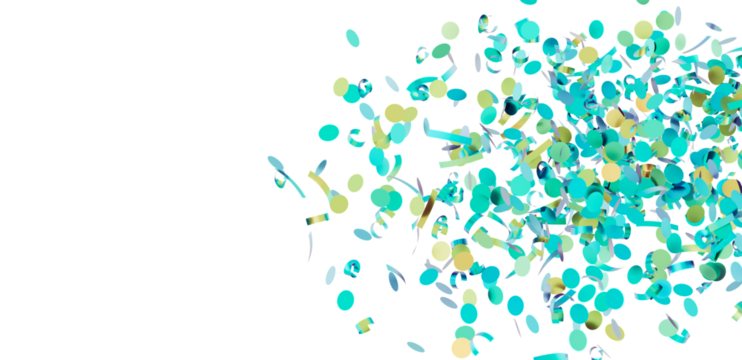 A festive background image featuring teal and gold confetti falling on a white background. Perfect for celebrations and parties.