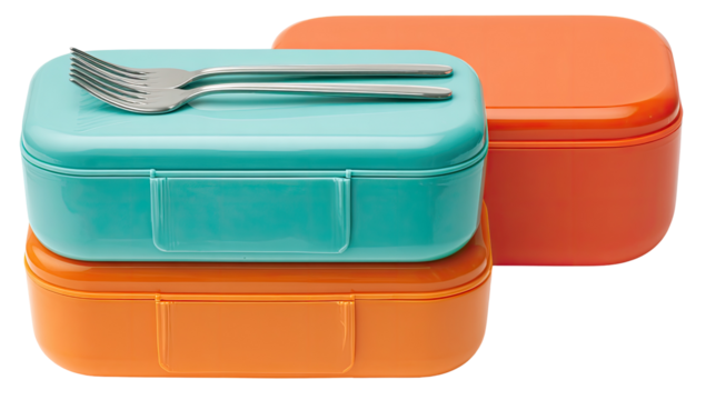 An abstract composition featuring glowing teal and orange light forms isolated on a transparent background.