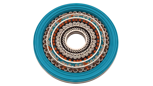 Ornamental scalloped teal and pink border vivid decorative design transparent