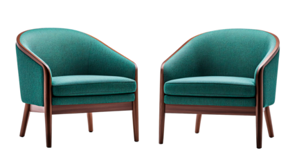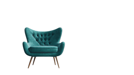 A stylish teal armchair set against a minimalist backdrop in a modern living space