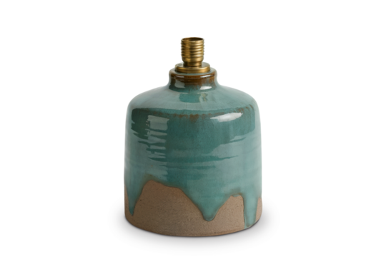 Handcrafted Ceramic Table Lamp Base with Dripping Teal Glaze over Tan Earthenware, Isolated on Transparent Background