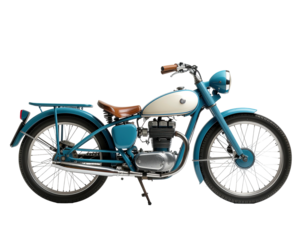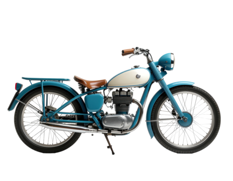 Classic teal motorbike w/ tan seat, white fuel tank, black bg