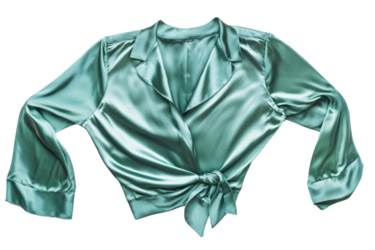 Elegant satin teal wrap top showcasing contemporary fashion details for stylish outfits isolated on transparent background