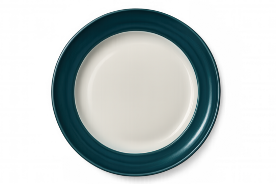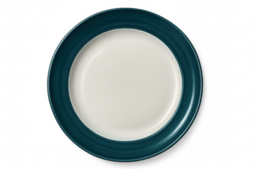 Teal-rimmed ceramic plate featuring pristine white center, highlighting gourmet dishes with modern minimalist design