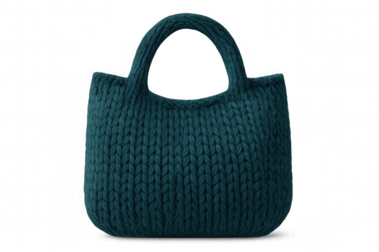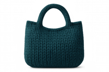 Stylish teal knitted handbag isolated on transparent background, perfect for fashion and accessory projects