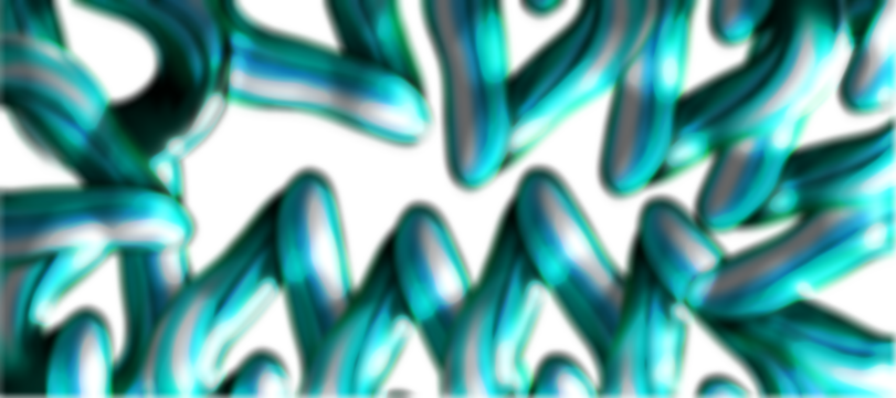 Blurred abstract image featuring intertwined, tubular shapes in shades of teal and white