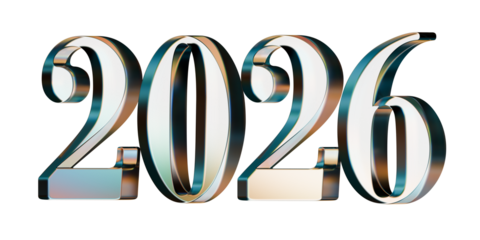 Isolated teal and orange glass letter 3d illustration happy new year 2026