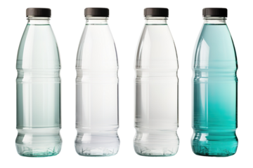 Exploring the Wonderful Transition of Water Colors in Bottled Confines Under Bright Natural Light on White or PNG Transparent Background.