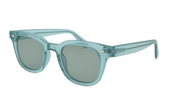 Teal transparent fashion sunglasses with gray lenses, stylish summer eyewear accessory for eye protection