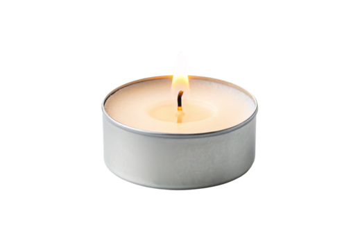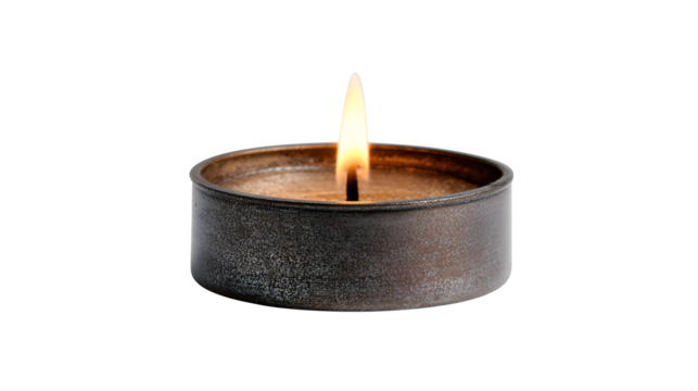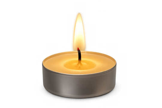 Burning tealight candle with transparent background illuminating serenity