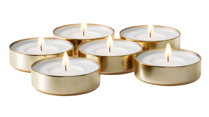 Golden Tealight Candles, isolated on transparent background