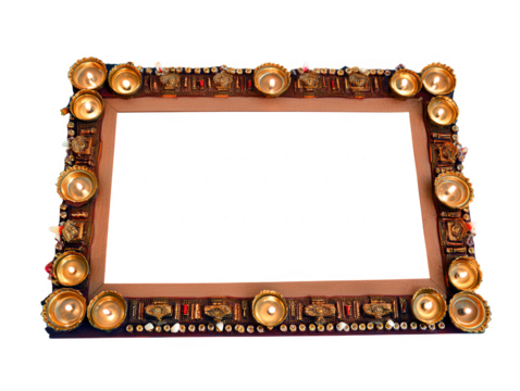 Ornate decorative frame with tealight candles illuminated warm glow isolated on transparent background