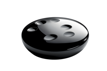 Glossy Bowling Ball with Reflective Surface and Finger Holes on a Dark Background