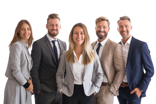Diverse business team posing confidently for corporate success representation with isolated