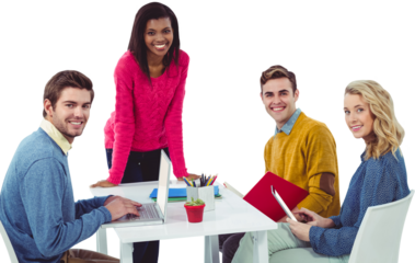 A diverse group of business people standing with their backs to the camera, isolated on transparent background