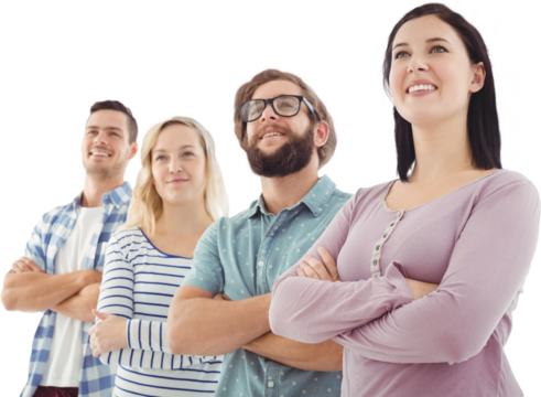 Diverse team showing thumbs up outdoor atmosphere transparent