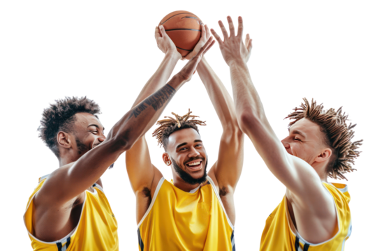 Basketball, high-five basketball player with teammates.Isolated on a transparent background.