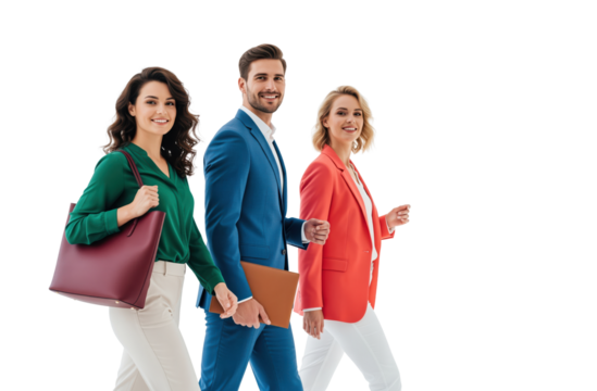 Modern business people discussing business and smiling while walking on a transparent background