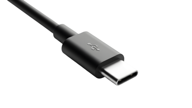 Close-up of black USB-C cable with inline adapter on white background. Modern electronic accessory for data transfer, charging, and tech connectivity visuals. Isolated on transparent background, png