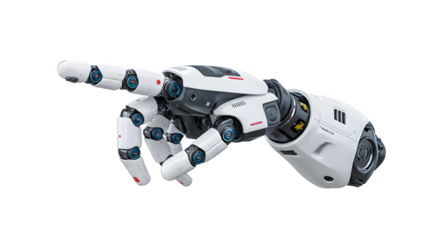 Transparent metallic robotic arm pointing gesture