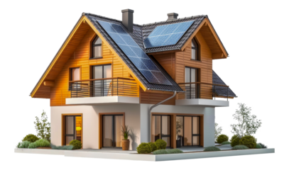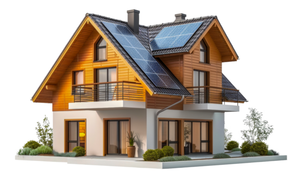 Modern house with solar panels, cut out - stock png.