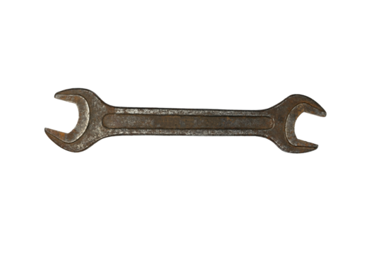 Rusty Double-Ended Wrench on Transparent Background for Industrial and Vintage Themes