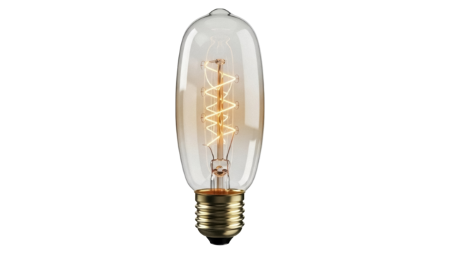 Vintage light bulb PNG isolated on transparent background, glowing filament lamp for retro design and energy concepts