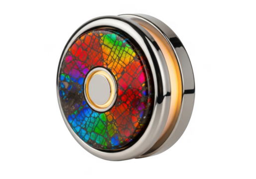Iridescent button with glowing ring isolated on transparent background for luxury tech and decorative item use cases