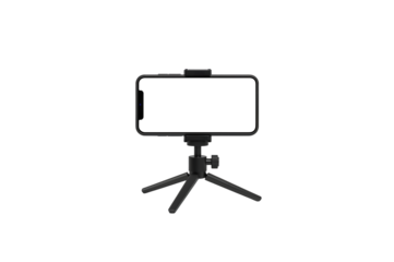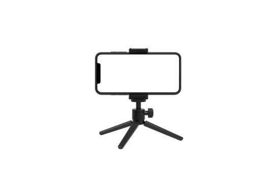 Isolated device is set on the tripod ready for vlog recording, filming video in studio