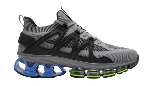 Technical drawing of a hooded jacket with gray accents and pockets isolated on transparent background