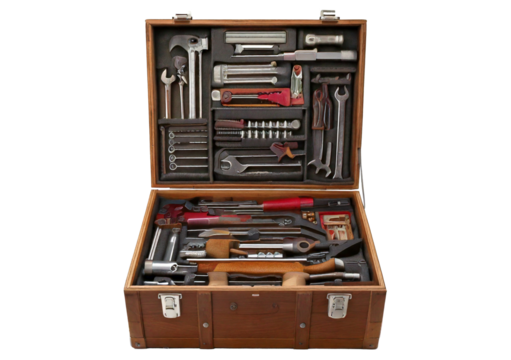 Old rusty metal wrench tool providing mechanical repair and maintenance on a transparent background