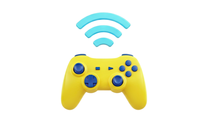 Yellow game controller with wireless signal icon