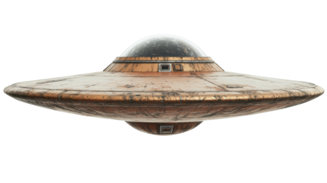 Retro ufo flying saucer hovering with transparent background