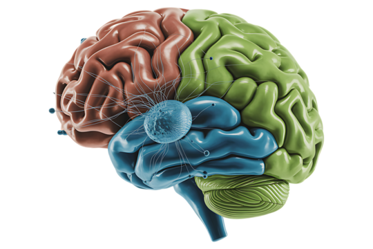 A businessman in a suit using futuristic technology , isolated on transparent background