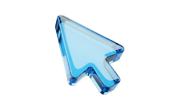 A sleek 3d transparent blue cursor icon representing digital navigation and technology isolated on transparent background
